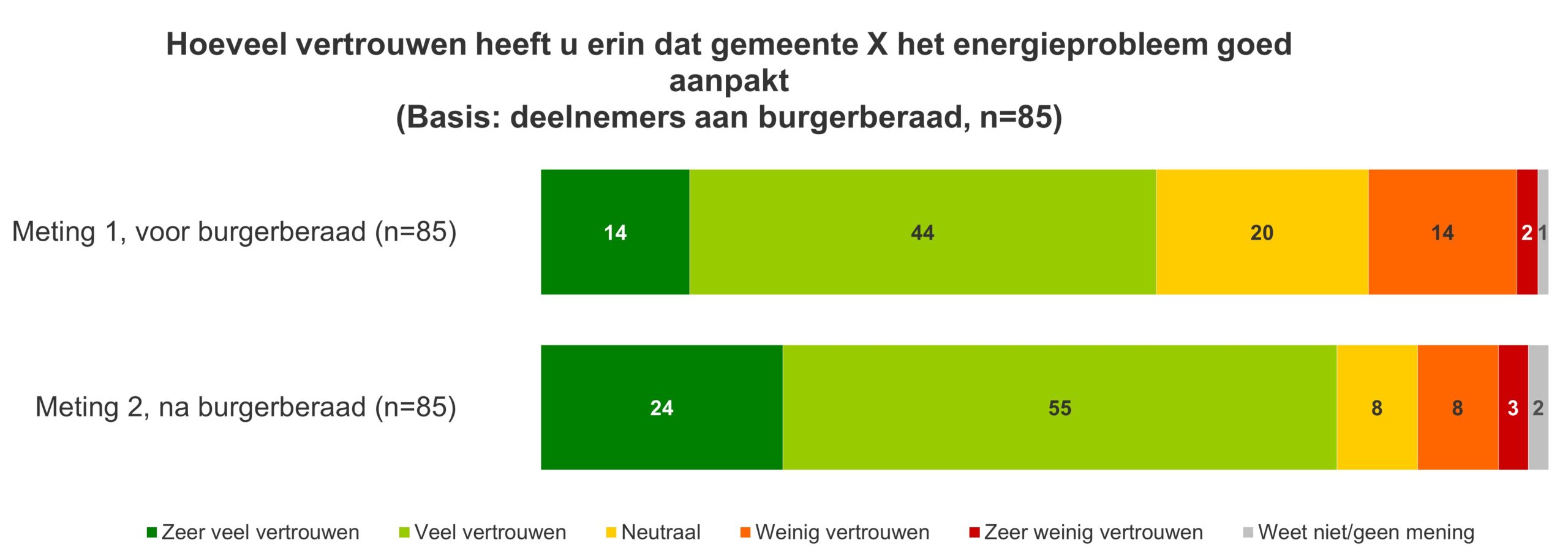 De combinatie van kwalitatief en kwantitatief onderzoek verschaft je diepgaande informatie over de attitude van de burgers, bedrijven en maatschappelijke organisaties ten opzichte van je plan of project. We gebruiken hiervoor bijvoorbeeld de AttitudeSchaal waaraan je de houding van de omwonenden ten opzichte van bepaalde plannen kunt aflezen. Of de ImpactSchaal die laat zien in hoeverre de deelnemers na een burgerberaad over het onderwerp van mening zijn veranderd. Met deze schalen kun je het onderwerp van je participatie vooraf beter kiezen en de participatie zelf ook beter opzetten en na afloop de impact ervan aantonen.